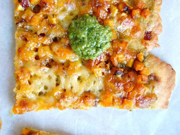 Caramelized squash, zesty pesto and creamy provolone & cheddar cheese on a whole wheat crust! Pizza night at its best! Lets talk about this pizza. The only time I had butternut squash pizza was a year or so back in Chicago, one late night after lot of drinks, when almost everything tastes good. We ordered … Continue reading Caramelized Butternut Squash Pizza with Pesto