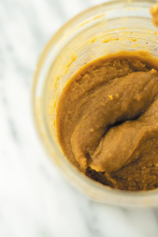 First add honey to lentils and blend until you get a fine paste. Then add peanut butter and blend again. You will end up with something like this above picture.