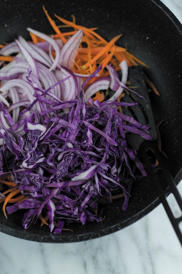 Once everything is ready, I saute vegetables and mix it with cooked noodles, sauce & crispy tofu.
