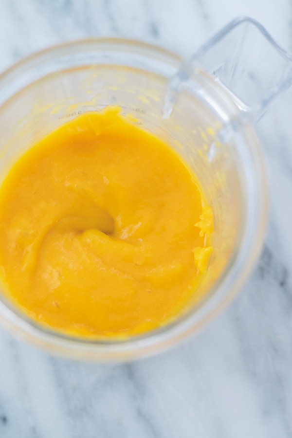 2. If using fresh mangoes, peel and chop and puree until you have smooth mango puree.